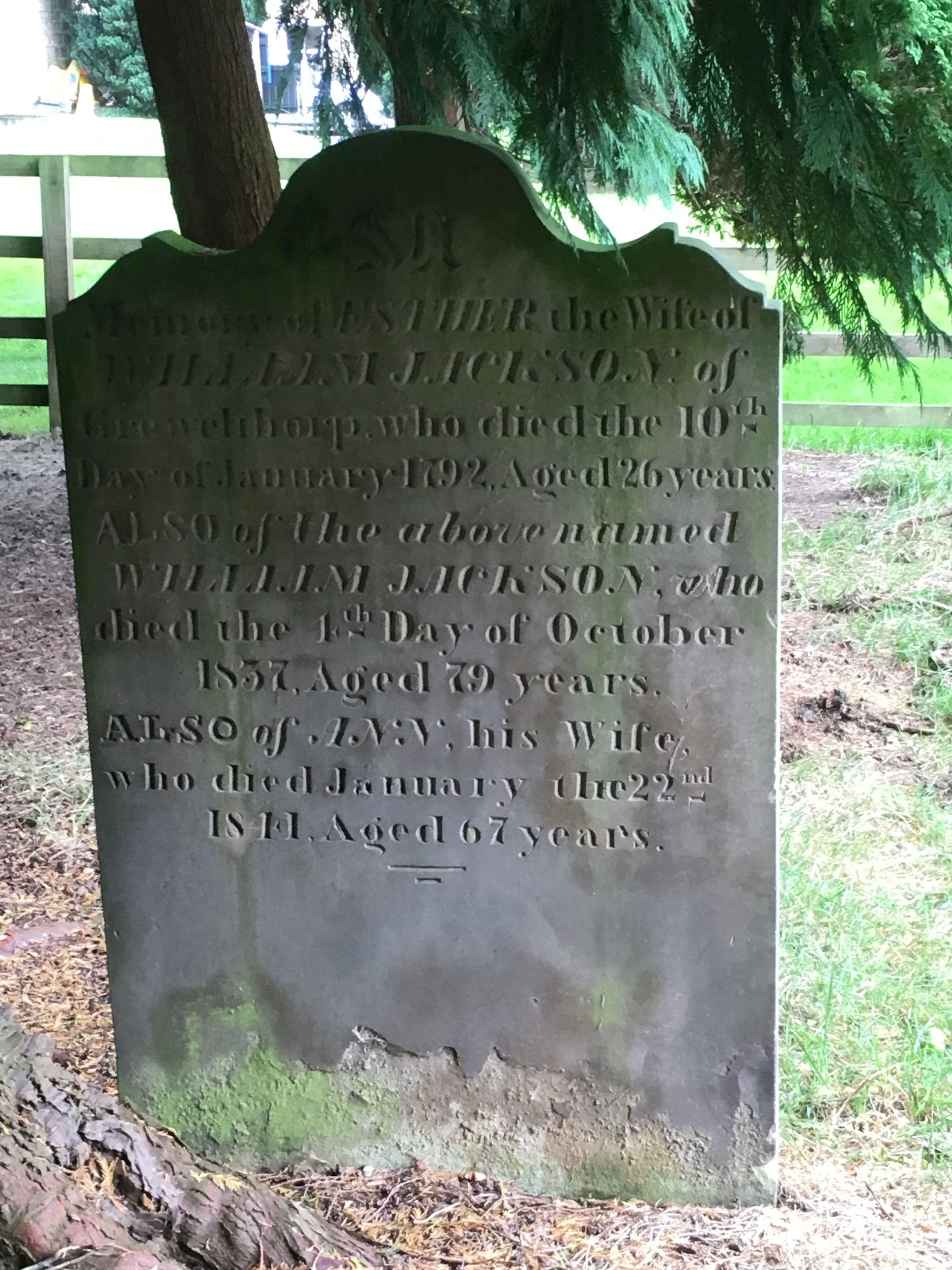 Also grave of Jane & Emily Jackson also in Grewelthorpe churchyard.